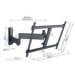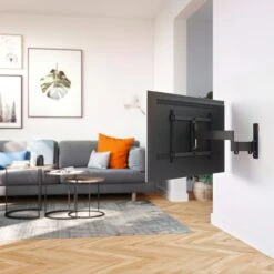 Die TVM 3645 Full-Motion+ ist eine schwenkbare und äußerst vielseitige VESA-Universal-Wandhalterung, die für Flachbildschirme von 40″ bis 77″ geeignet ist. Dein Fernseher kann mühelos um bis zu 90 Grad horizontal in beide Richtungen geschwenkt und um bis zu 20 Grad vertikal nach unten geneigt werden. So hast Du viele Möglichkeiten, immer den bestmöglichen Blickwinkel auf den Bildschirm zu erhalten, und kannst den Fernseher gleichzeitig flach an der Wand parken, wenn Du möchtest.