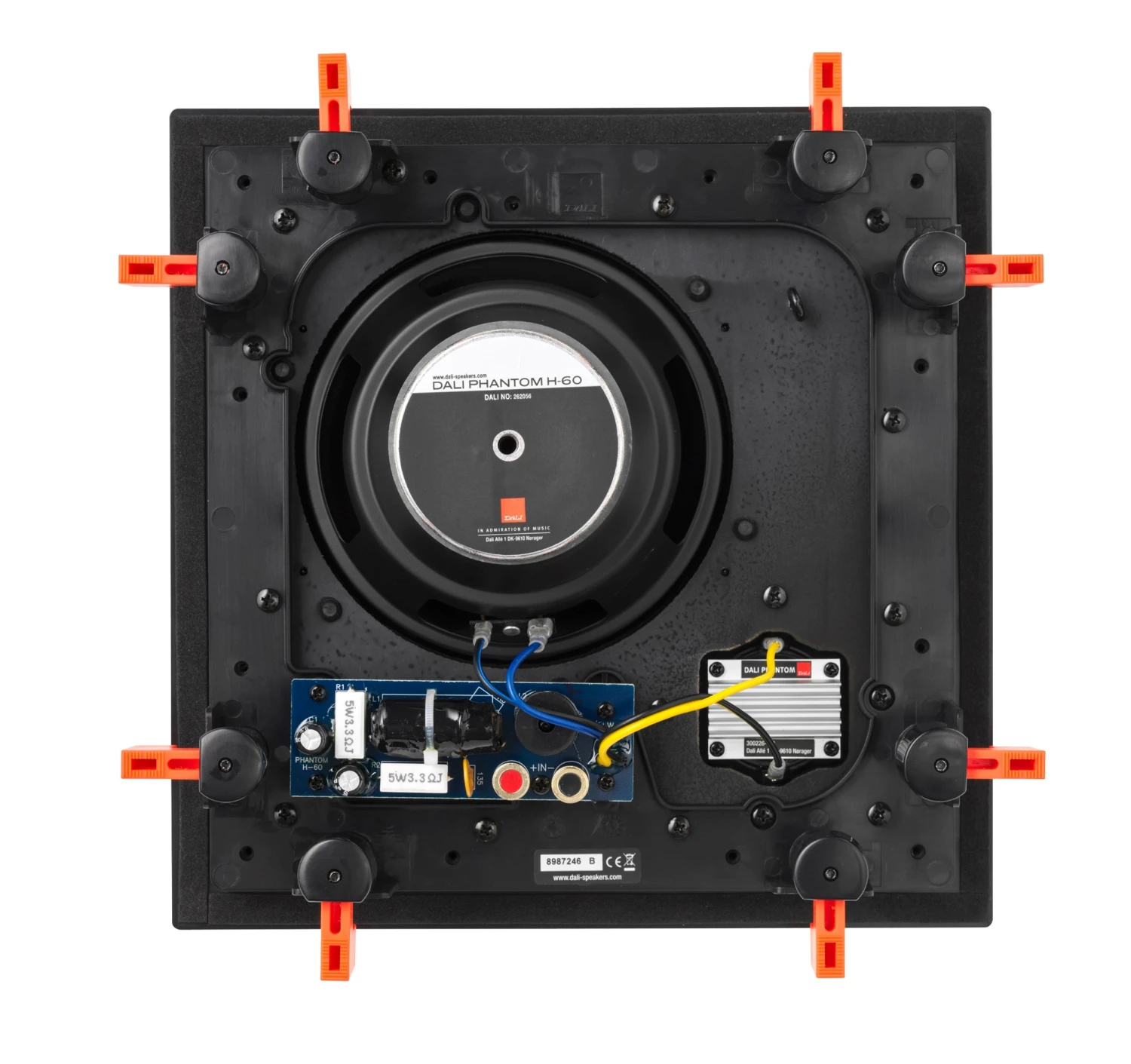 Der PHANTOM H-60 besitzt einen 165 mm großen Tiefmitteltöner und benötigt eine nur 26×26 cm große Einbauöffnung in der Decke oder Wand. Die 28 mm-Hochtonkalotte übernehmen die Abstrahlung aller Frequenzen oberhalb von 1.900 Hertz.