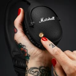 Der Marshall Monitor II A.N.C. ist in Schwarz erhältlich. USB-C Ladekabel, Audiokabel und Transporttasche mit weißem Marshall-Logo sind inklusive.