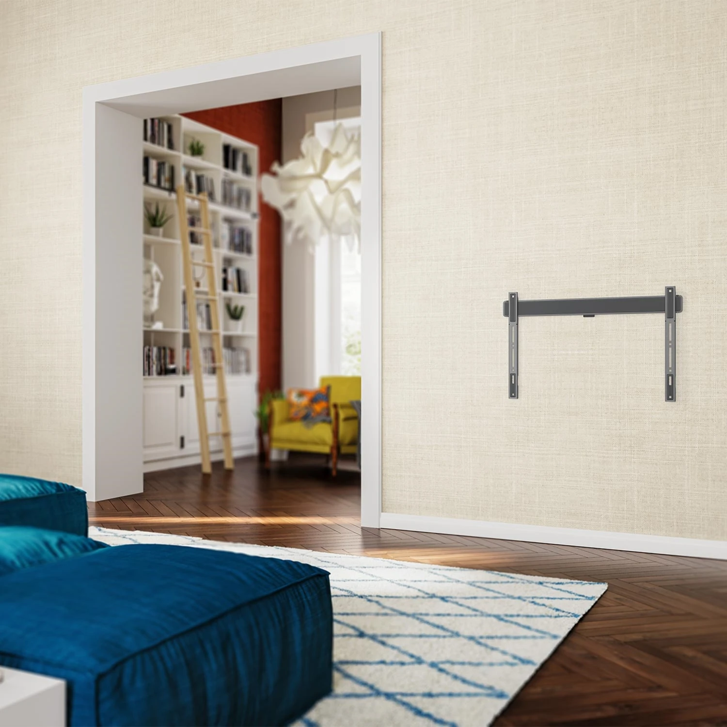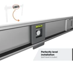Die eigentliche Montage der Halterung an der Wand ist denkbar einfach, denn die TVM 5605 Elite Flat Large 100″ ist mit einer kleinen eingebauten Wasserwaage ausgestattet, die bei der horizontalen Ausrichtung sehr hilfreich ist. So bist Du auf der sicheren Seite, wenn Du Löcher in die Wand bohrst.